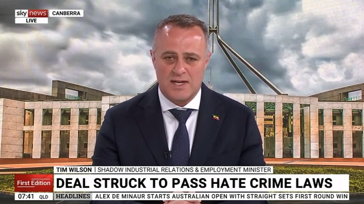 Tim Wilson MP: Well I think people should be very cautious about what we're talking about. We're talking about prohibited hate groups legislation, which is focused on making organisations or groups that are formed for the purpose of causing or sowing social discourse and harm in the community being disbanded. And I think there's a pathway there. That's obviously conversations between the minister and the shadow minister at the moment, and I think there's a likelihood of success. The Government has shelved its racial vilification provisions and there's also other provisions like the Migration Act. So we've had our meeting in the party room last night. We'll wait and see what comes out. No doubt there'll be an announcement shortly but the most important is we get the law right. The reality is the Prime Minister has allowed this antisemitism crisis to bubble to the point of catastrophe last year and there is no simple legal fix that will solve it overnight. This is going to be a sustained effort of leadership over many years about the type of country we want to be and to bring people together and to set the tone not just a quick legislative fix in the next 24 hours.